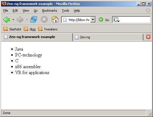 We have a simple listing of all the courses. This is nothing real fancy, hell even the application model raises questions, but it does demonstrate some of the features of the framework. I will now explain what I will add in the next step. I will make the links clickable and it will give a listing of the students and their respectable grades for that course, I will use a user control, it's a special reusable object in the framework, in this case it will be the listview-ng control, written by Yannick Houbrix wich had improvements over my original listview, which I will use to display the data. There is also a downloadable zip file with the full sourcecode and another screenshot if you are still interested, else thank you for reading this far, feel free to switch to java though ;)